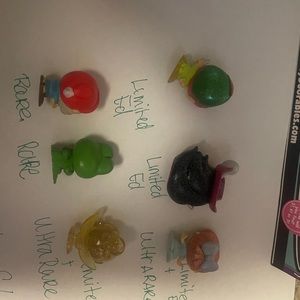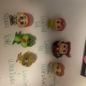 these are ultra rare and hard to find the have an all over glitter coating on Wendy , Hook and pan , tinkerbell is a limited edition clear yellow glitter and the. cute little Mr.Smee