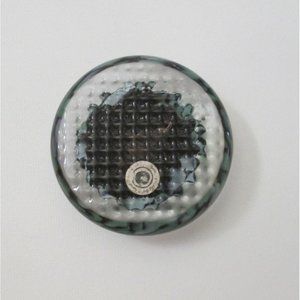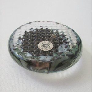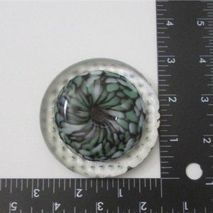Peter Patterson Art Glass Paperweight Clear Bubbles Green Black Speckled Dome