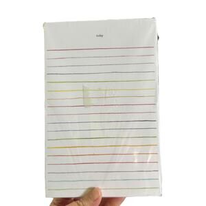 E Frances thick notepad. Header says “Today” with rainbow lines. Perfect for to-do lists or meal plan recipe lists. New in plastic wrap. Unsure how many sheets are in notepad. Definitely a thick stack. 8.5” tall x 5.5” wide x .75” thick. All measurements are approximate. This notepad is not Peter Pauper Press, just the journal is.