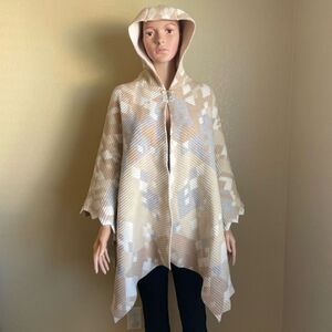 Peter Pilotto Geometric Ottoman Cape Shawl Wool Angora Hooded Women’s One Size