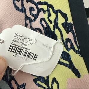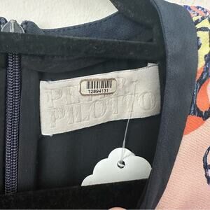 This stunning Peter Pilotto dress features a striking asymmetrical high-low hemline, perfect for a wedding guest or cocktail event. The sleeveless design with a crew neck showcases a vibrant blend of orange and blue, creating a modern and elegant look. Crafted in a sheath style, this dress combines contemporary artistry with timeless sophistication.