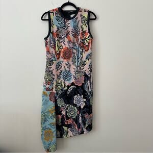 Peter Pilotto Orange and Blue Asymmetrical Sheath Dress Size 10