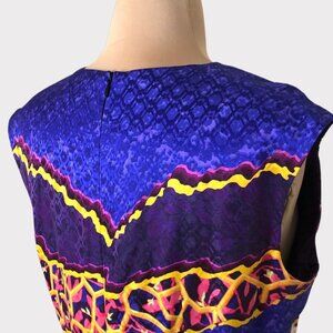 Peter Pilotto Sleeveless Dress 10 Silk Purple Gold Pink Abstract Designer Jewel