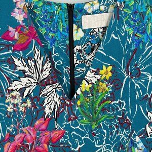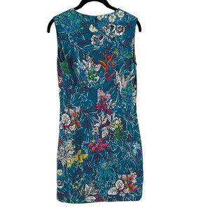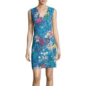 Peter Pilotto Sleeveless V-Neck Blue Botanical-Print Mini Sheath Dress Size US 4.