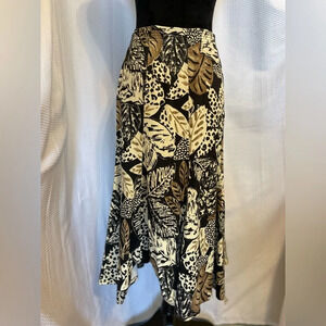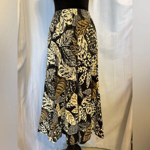 Peter Popovitch Black/brown Leaf Pattern Long Skirt Size Medium