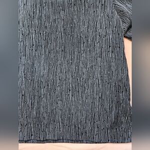 Peter Popovitch Womens Blue Vertical Striping Short Sleeve Blouse with Shoulder Pads Size Medium no size tags measurements pictured