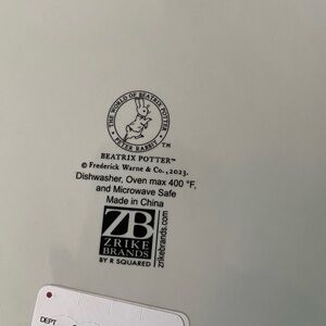 Brand New Adorable Beatrix Potter Peter Rabbit baking/casserole/serving dish feasting Peter Rabbit waving to pink fluttering butterflies will surely add a wonderful touch of whimsey to your Easter dining and entertaining.
