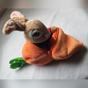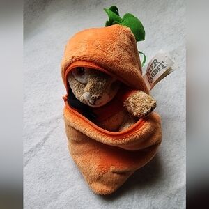 Hippity, Hoppity Easter is on its way and this adorable Peter Rabbit Carrot Easter Plush animal, Flopsy, would love a home in your Easter Basket. This 7" plush rabbit zips quickly in and out of its carrot to hide away when not in play.