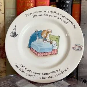 The Wedgwood Peter Rabbit Baby's plate is made from silky white fine bone china for a translucent finish and superior durability. The plate is perfect for children and the young-at-heart alike. Charming decorative plate featuring Peter Rabbit. Adorned with a bedtime scene and text. Perfect for collectors.