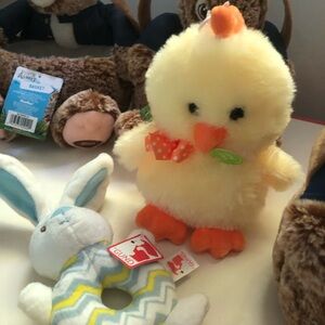 Hi! 3 brand new Peter Bunny Easter Baskets + a few Easter baby toys. Perfect for little ones 🥰