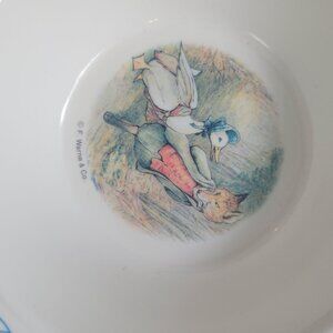 Whimsical children's bowl featuring Peter Rabbit & Friends illustrations by F. Warne & Co. Durable china, ideal for kids' meals or collectible display.