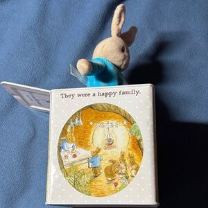 Charming Peter Rabbit musical tin box. Features a delightful illustration with a rabbit and chick. Perfect for collectors. 5x5.5x5. Great gift, baby shower gift. Decoration.