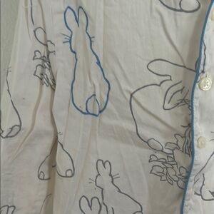 Adorable Peter Rabbit 3-4 years M&S bunny print pajamas. Features a playful design with blue piping. Tags removed to wash but never worn. 100% cotton. Excellent condition.