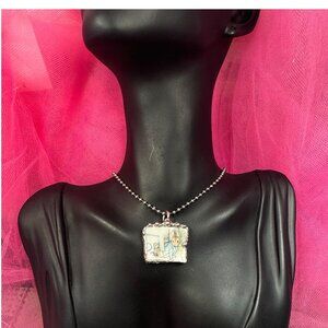 Peter Rabbit Wedgwood Broken China Pendant w/ Silver Artisan Bezel & Ball Chain