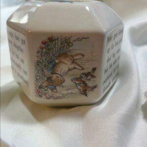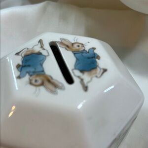 This cute little Peter rabbit (Bank) also tells a story with pictures. Please see photos.