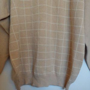 Peter Scott Camel and White Plaid Long Sleeve 100% lambs Wool Large