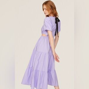 Subtle cutouts add a sultry touch to this storied lavender midi dress by Peter Som Collective.