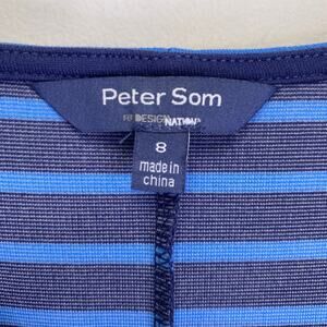 Peter Som Design Nation Blue Stripe Dress Fit & Flair Jersey Knit V-Neck Size 8