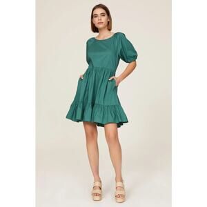 Peter Som Green Open Back Ruffle Hem Puff Sleeve Mini Dress Women's 6 Preppy