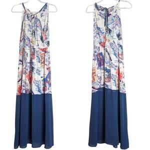 Beautiful maxi dress with elastic high waist tie and key hole neckline with tie closure on the back.