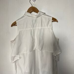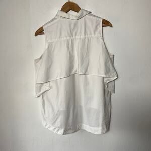 Peter Som White SZ 12 Sleeveless Draped Collard Top Quiet Luxury Minimalist Euro