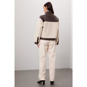 Off-white colorblock faux shearling (100% Polyester/100% Polyurethane). Jacket. Long sleeves. Collar. Front button closure. Imported.