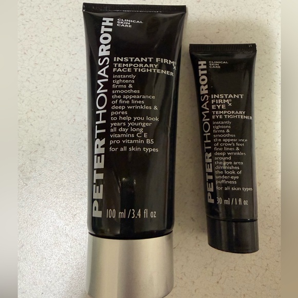 3.4 oz tube of Peter Thomas Roth temporary face tightener and 2 oz. tube of Peter Thomas Roth temporary eye tightener. Both tubes are almost full . Any questions feel free to ask . Thank you for looking !