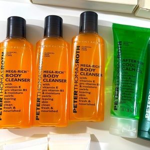 Peter Thomas Roth Mega-A-Rich Travel Hotel Bath & Body Set Shampoo Conditioner Gel Cleanser Lotion Facial Massaging Bar Airbnb