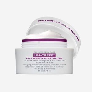 Combat crepey, thinning skin with Peter Thomas Roth UN-CREPE Face & Neck Moisturizer. This advanced anti-aging cream delivers deep hydration, helps firm and smooth the delicate face and neck areas, and improves elasticity to reduce the look of fine lines and wrinkles.