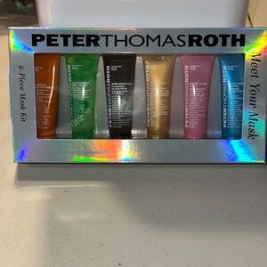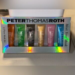 Collection of Peter Thomas Roth masks in vibrant colors. Includes pumpkin, cucumber, mud, gold, rose, and marine masks.