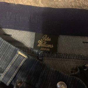 PW jeans. They are so comfortable and with no inside leg seams they are like wearing a pair of jodhpurs. Elastic waist band, hook and bar fastener.