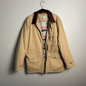 Our Tan Barn Coat has a neat square shape and short length. Cut in robust cotton canvas with a cozy brushed cotton lining and featuring the classic corduroy collar, adjustable cuffs and vented armpits that prevent overheating. Smart and practical, with just a hint of rugged outdoorsyness