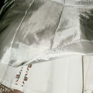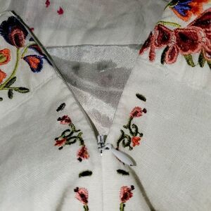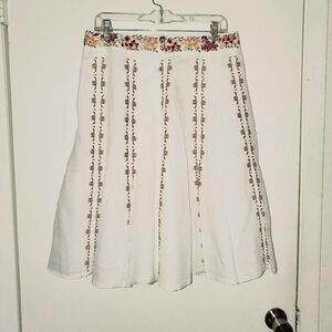 Peter Martin 100% linen, lined skirt. White with a delicate, and beautiful colorful multi-colored floral embroidered design. Pre-owned in excellent condition.