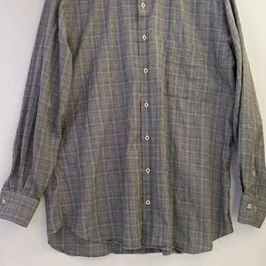 Men’s Peter Millar Long Sleeve Button Down Shirt. One pocket. Please see photos for indications of use and measurements. Small chip on sleeve button see pic 8.