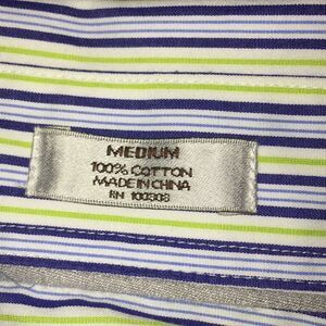 Peter Millar SS Blue Lime Green Stripe Shirt M