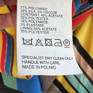 *Combining digital technology and traditional craftsmanship, Peter Pilotto renders eye-catching prints on sleek, modern silhouettes. Like this Hendrix midi dress from Spring Summer 2015 ’70s-theme runway collection. Striking a psychedelic chord with a vibrant print set against a chic navy silhouette. With a peplum-style waist and pleated, asymmetric hem.