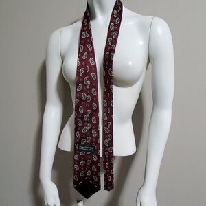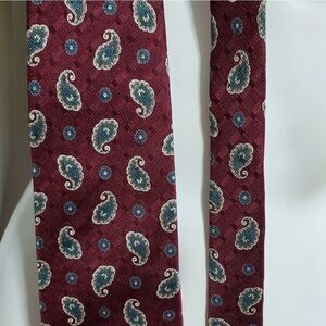 Peter Thomas by Superba maroon and green patterned 100% Italian silk tie.