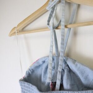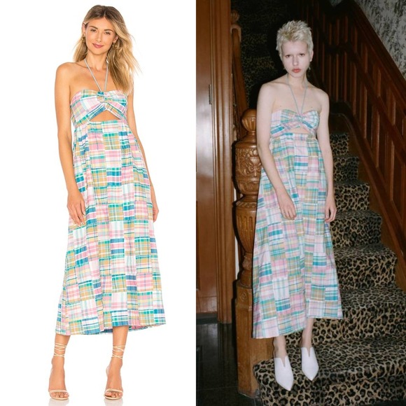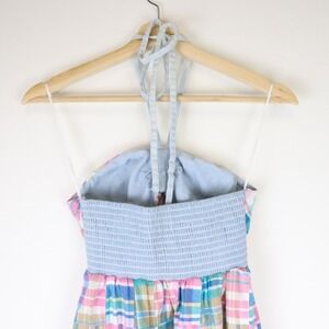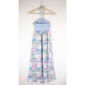 Petersyn Athena Midi Dress Madras Patchwork Halter Pastel Preppy Ruched. Size Medium.