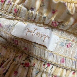 Petersyn Barrett Skirt Smocked Ruffle Mini Skirt Floral Buttermilk Yellow Size M