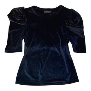 Petersyn Black Velvet Puff Sleeve Crew Neck Top