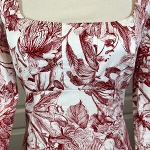 Petersyn Lilah Dress in Perth Long Puff Sleeve Zip Back Mini Red White Size XS. Excellent condition. Beautiful white with deep red crimson floral print, puff shoulder, long sleeve with split cuff, squared scoop neckline, zipper back, lined bodice. See photos for details and measurements. Perfect for wedding, date night, vacation, sorority, college, dinner, brunch, shower, feminine and flattering