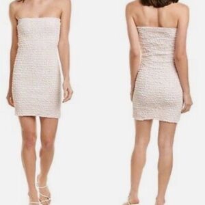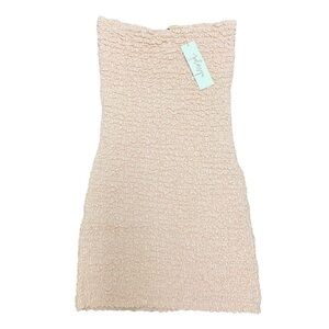 NWT Petersyn Revolve Nora Stretchy Smocked Strapless Bodycon. Textured all over smocking fits your form perfectly! The color of this dress is officially called melon, I think it resembles of toned down orange with the white striping in between. Adorable piece that can be worn by itself on hot summer days or layered with a jean jacket on cooler days.