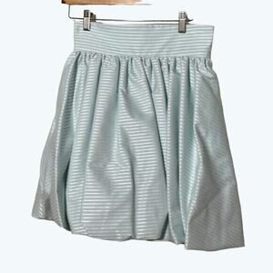 bubble skirt · Petersyn skirt · aqua blue stripes · party mini · structured hem · cocktail style · luxe fabric · flirty bottom · designer brand · statement skirt · weekend outfit · feminine chic · weekend wear