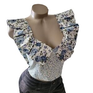 Petersyn Sybil Cropped Floral Smocked Top Size L New