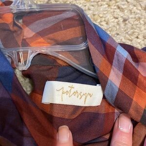 Petersyn Women’s Blouse Size XS Plaid Checkered Mock Neck Shirt in great condition!