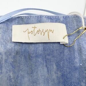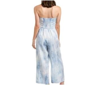 Petersyn Womens Jumpsuit L Strapless Linen Blend Corset Wide Leg Watercolor