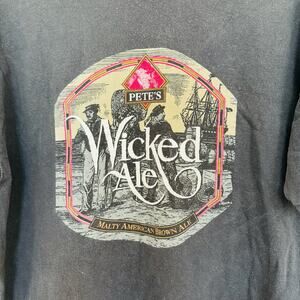 Pete's Wicked Ale Vintage 1990s Classic Black Cotton T Shirt XL Beer Malty Ale