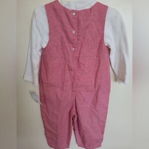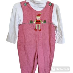 Petit Ami Boutique Red Checkered Christmas Elf Overalls Turtleneck Size 18 Month