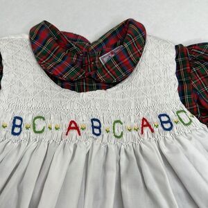 Petit Ami red Plaid dress white smocked embroidered pinafore Vintage size 2T EUC