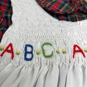 Petit Ami red Plaid dress white smocked embroidered pinafore